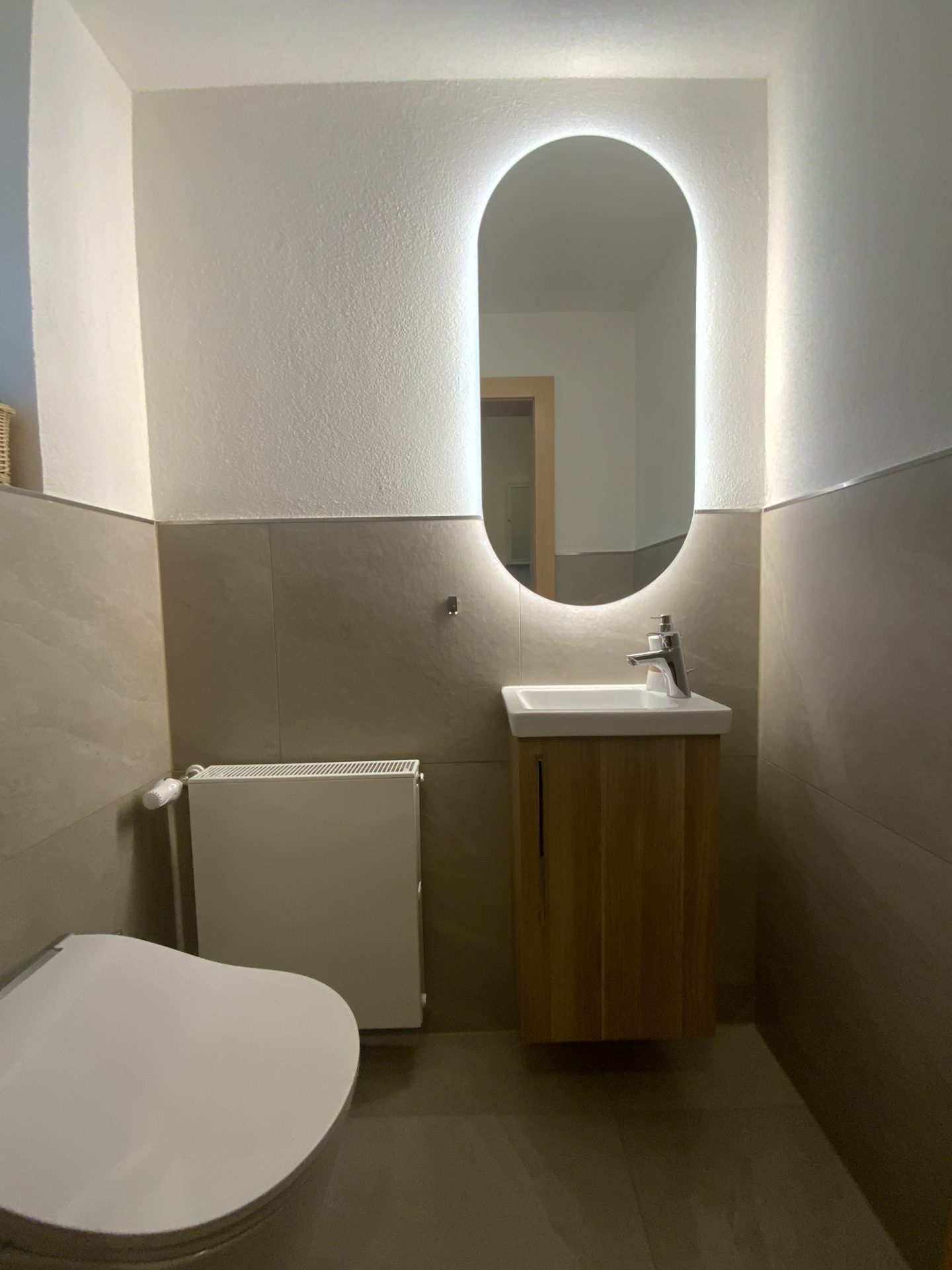 Wir führten hier einen Komplettumbau inklusive Planung von Gäste-WC und Bad gemeinsam mit unseren Partnern Fliesen Zorn und Bausanierung Schmidt durch.